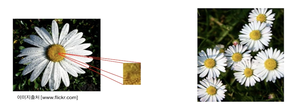 - 민들레를 섹션으로 쪼개 관찰해보면, 각 섹션에 민들레만 가질 수 있는 고유한 패턴(씨의 배열, 노랑-검정의 규칙적인 패턴)이 있을 수 있다.